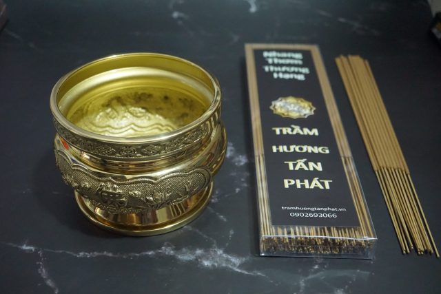 Nhang Trầm Thượng Hạng VIP – Hộp 130 Cây + Lư Hương Đồng