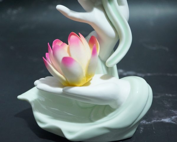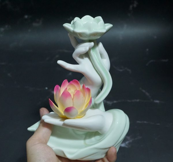 Thác Khói Tay Cầm Bông Sen kiểu dáng thanh tao cùng với màu Xanh Ngọc dịu dàng khi đốt nụ